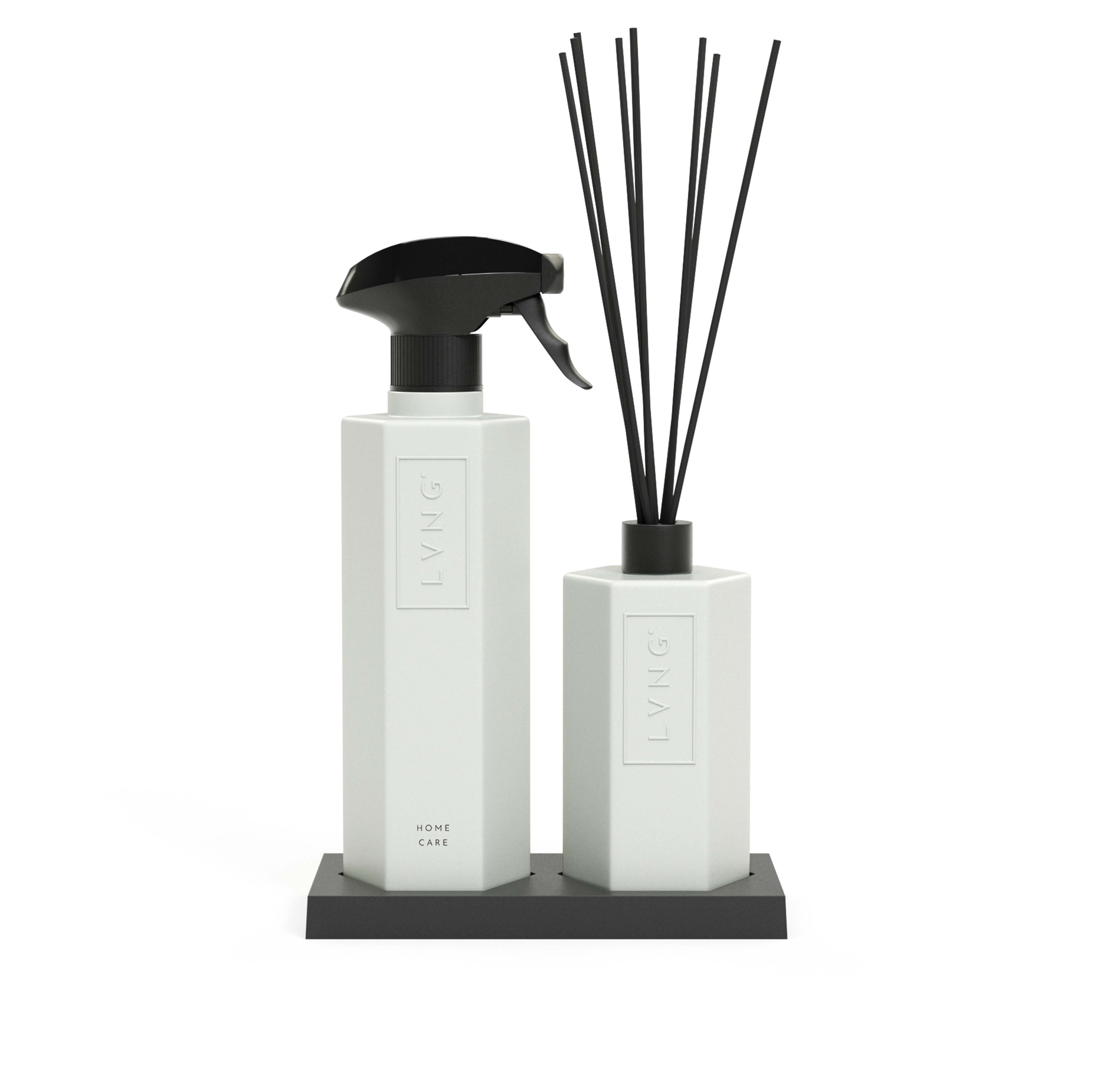De set bevat een aangenaam ruikende allesreiniger die tevens dient als roomspray, een home diffuser en een bijpassend plateau. Gemaakt van natuurlijke formules die zorgen voor een langdurige geurbeleving in huis.