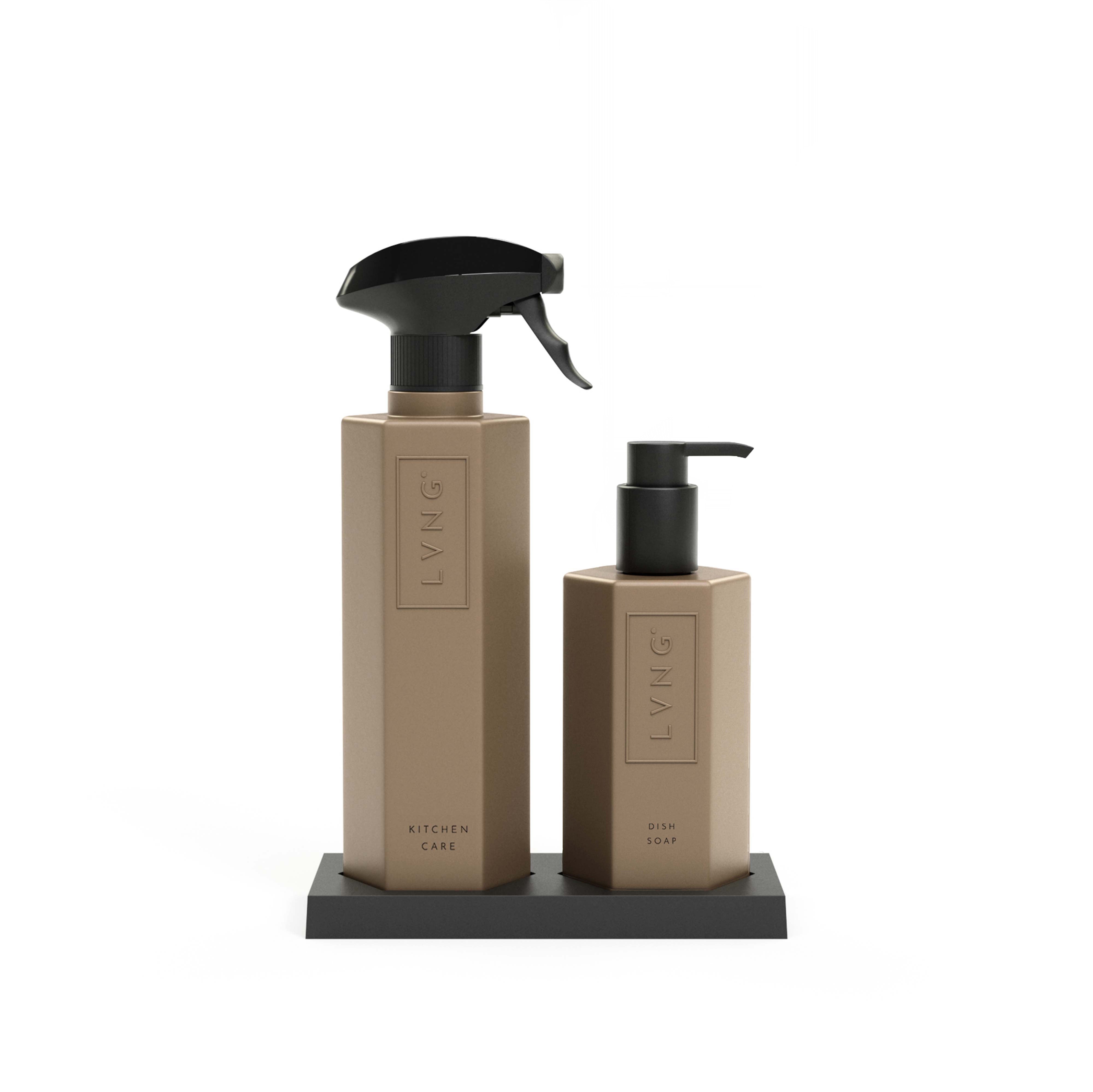 De LVNG Casablanca Kitchen Set is een complete en stijlvolle keukenverzorgingsset die reinigen en parfumeren combineert. De set bevat een krachtige keukenreiniger (450 ml) en een natuurlijk afwasmiddel (270 ml), beide gemaakt van natuurlijke en biologische ingrediënten.